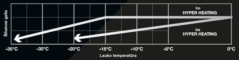 - efektyviai šildo prie -25°C lauko oro temperatūros;